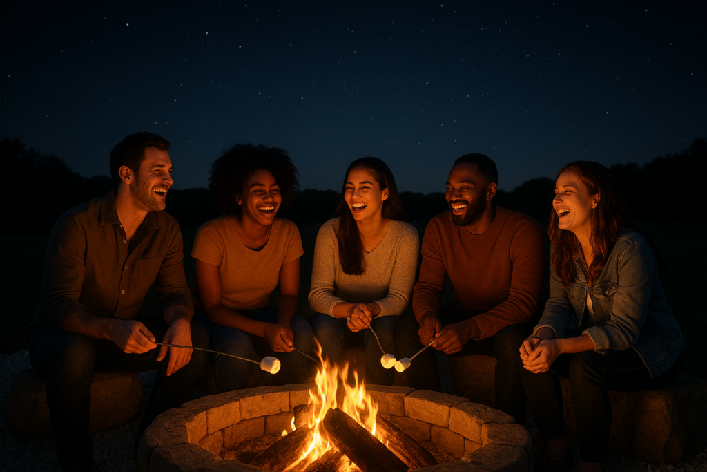 We’re adding a large, beautifully designed fire pit near the glamping area so guests can: